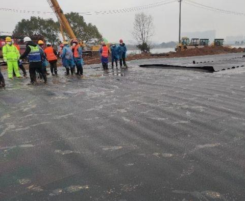 4、復合土工布,其實是復合土工膜的別稱,其主要是由一層塑料膜上下各粘接一層土工布制成的。土工布主要是保護中間的土工膜不受傷害,其防滲作用,一般用于人工湖、水庫、水渠、景觀湖的防滲。