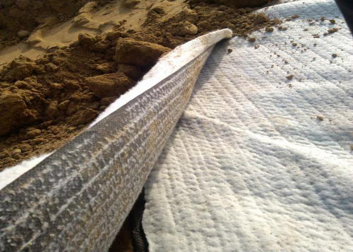 5.6發現有孔洞等缺陷或損傷時,應及時用膨潤土粉或用破損部位尺寸放大30cm以上的防水毯及膨潤土粉進行局部覆蓋修補即可,邊緣部位按搭接的要求處理。